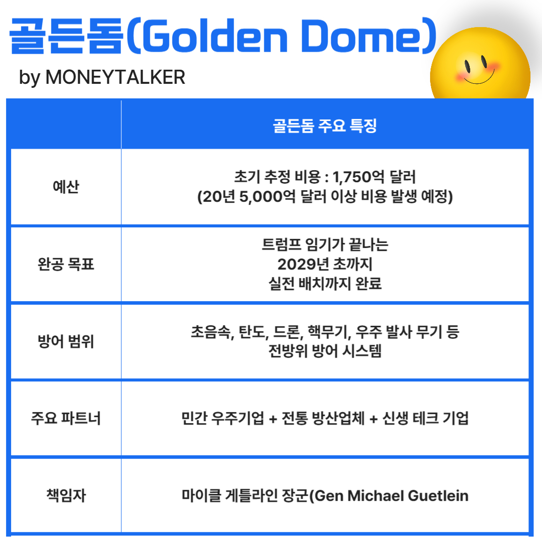 골든돔 프로젝트와 이 프로젝트를 이끌어나갈 주요 파트너사에 대해 알아보겠습니다! :)