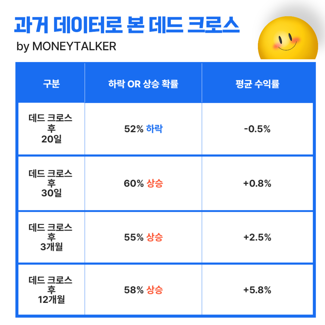 데드 크로스 기술적 신호의 의미와 역사적 데이터를 기반으로 데드 크로스 후 주식 시장의 전망까지 알아보겠습니다! :)